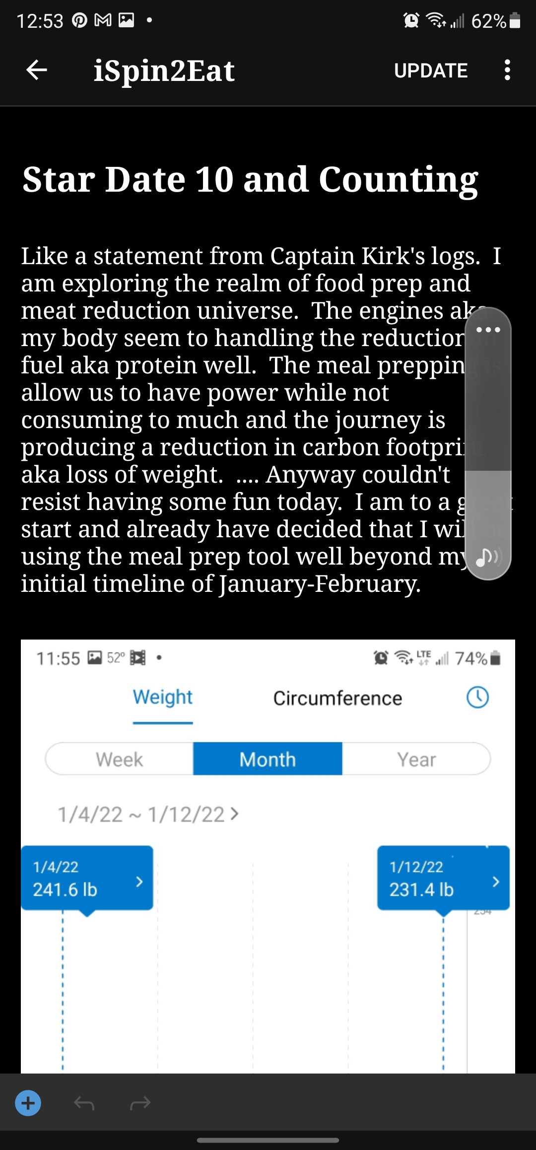 Like a statement from Captain Kirk’s logs. I am exploring the realm of food prep and meat reduction universe. The engines aka my body seem to handling the reduction in fuel aka protein well. The meal prepping is allow us to have power while not consuming to much and the journey is producing a reduction in carbon footprint aka loss of weight. …. Anyway couldn’t resist having some fun today. I am to a great start and already have decided that I will be using the meal prep tool well beyond my initial timeline of January-February.